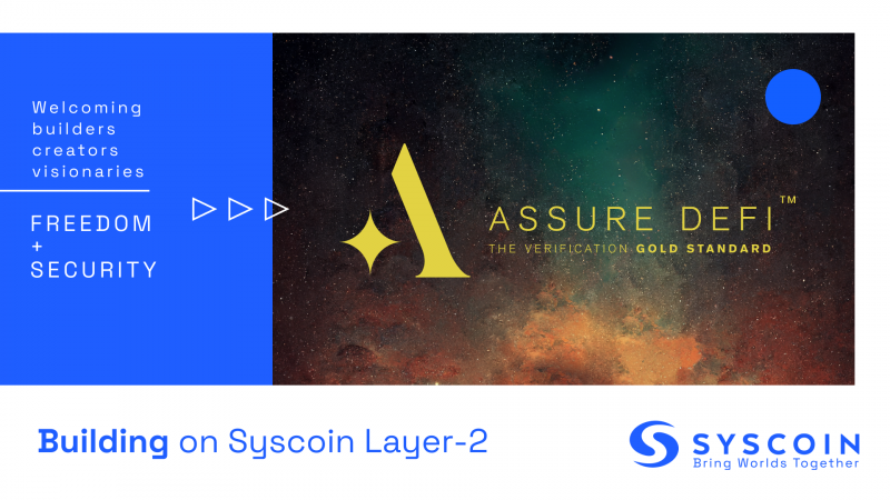 The gold standard KYC Verification company, Assure DeFi, comes to the only rollup platform backed by Bitcoin’s gold standard security, Syscoin. Assure Defi’s mission is to provide a more secure and trusting Web3 ecosystem through accountability while retaining the core tenant of anonymity at the forefront.